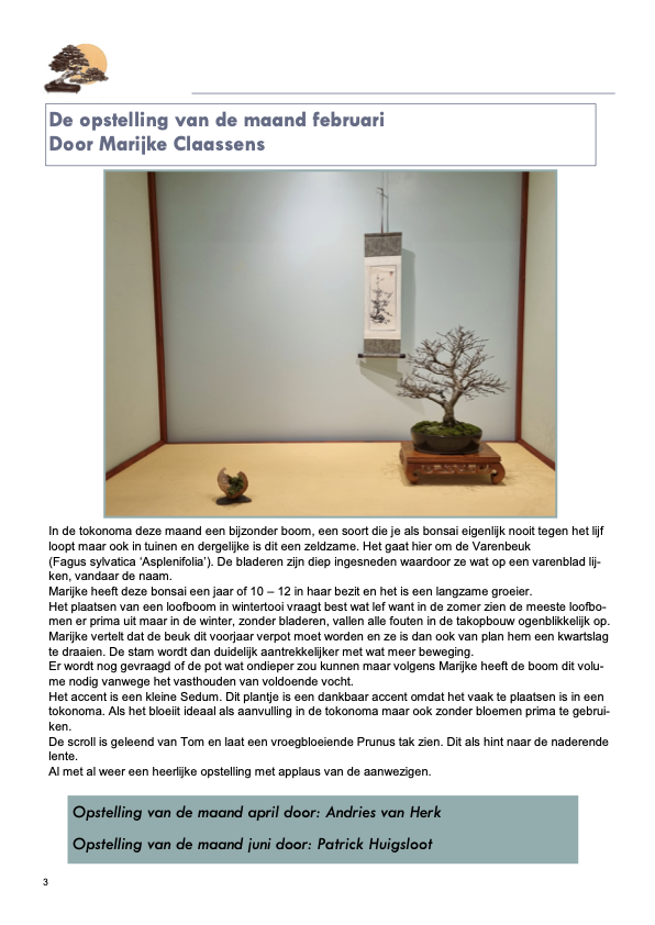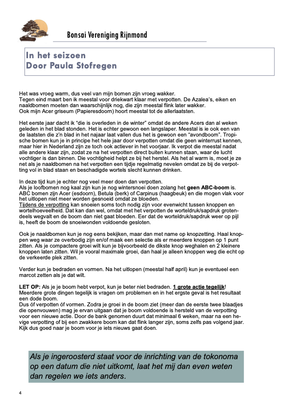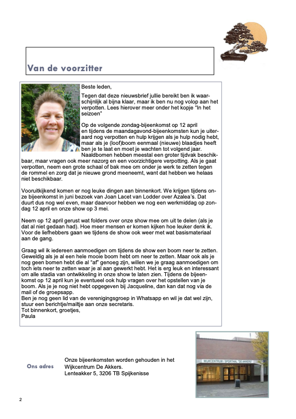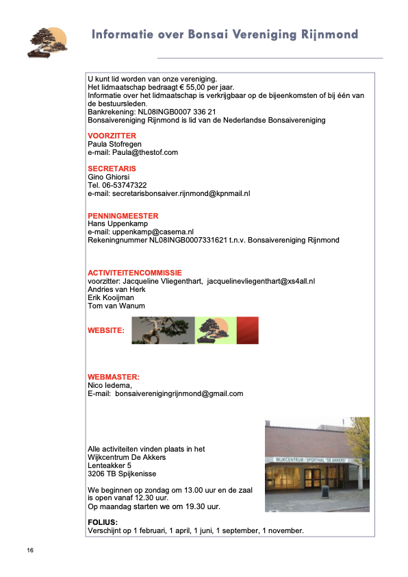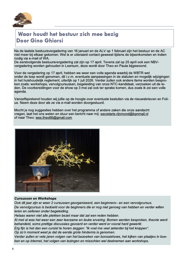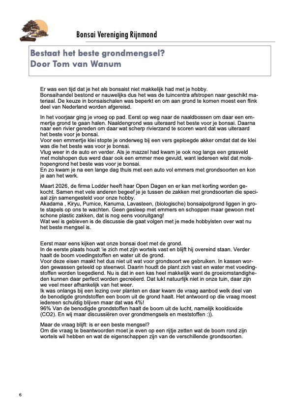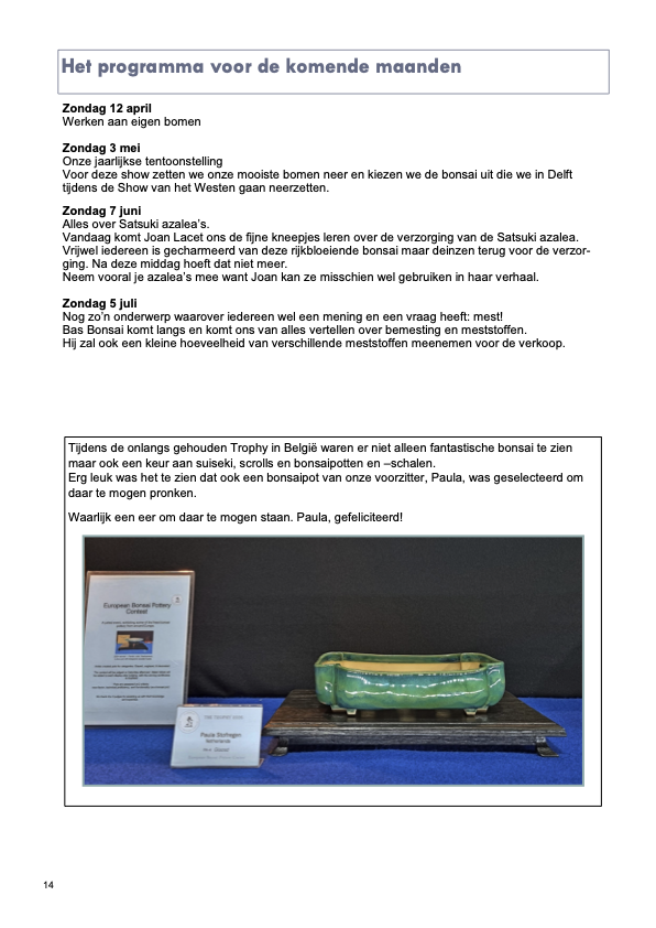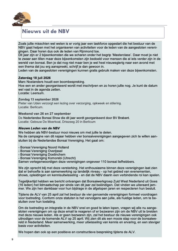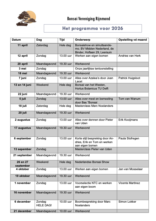 Programma 2026 “Bonsai vereniging Rijnmond”