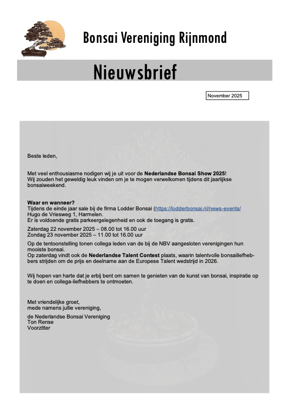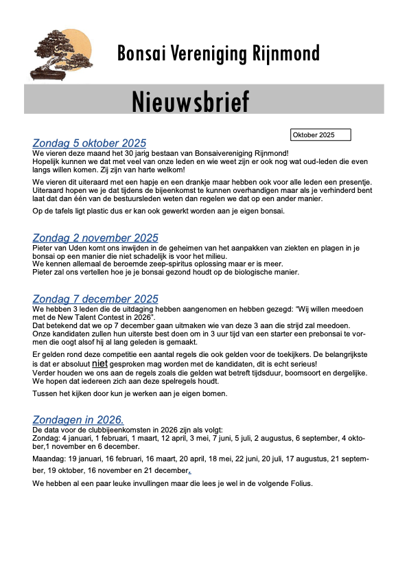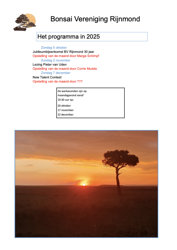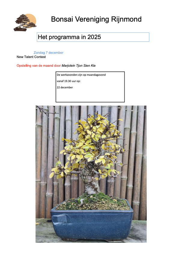 Programma 2026 “Bonsai vereniging Rijnmond”